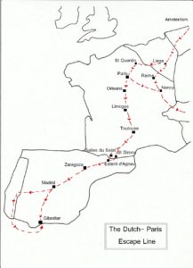 Throughout WW2 there were numerous organisations in the Netherlands that gave help and assistance to Allied escapers and evaders; many were interconnected with other lines that were operational in Belgium and France. The longest and most independent line was deemed to be Dutch-Paris, which was believed to have been established in early 1943 as an escape line, when an RAF airman arrived in Paris and in a reply to a question ‘Where did you come from?’, he replied, ‘Dutch to Paris’. Before that date the line had no name and Dutch helpers were moving evaders into France, Switzerland and down to the Pyrenees.